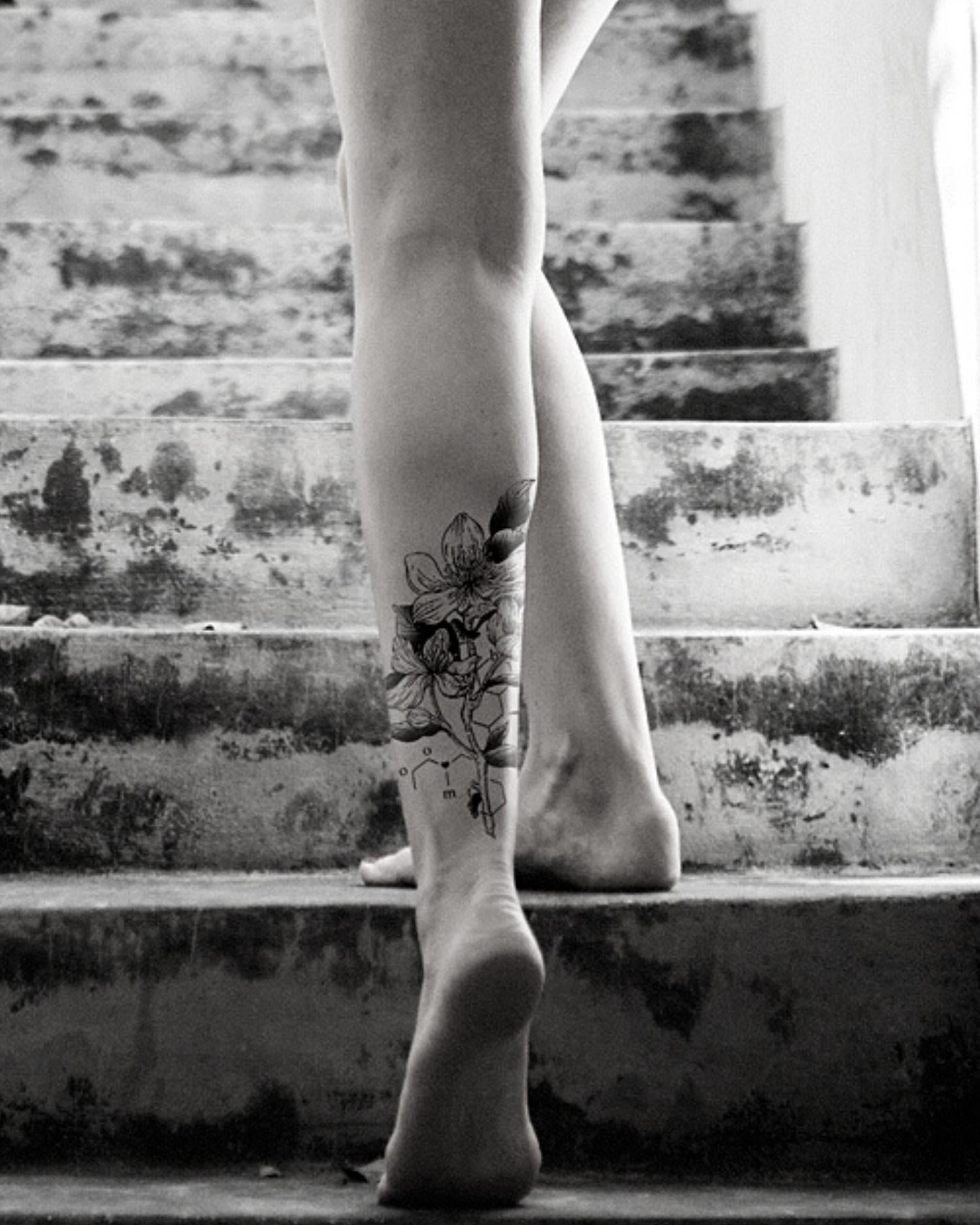 The "Blossom" tattoo unfurls a stunning masterwork, embodying the spirit of growth and beauty.