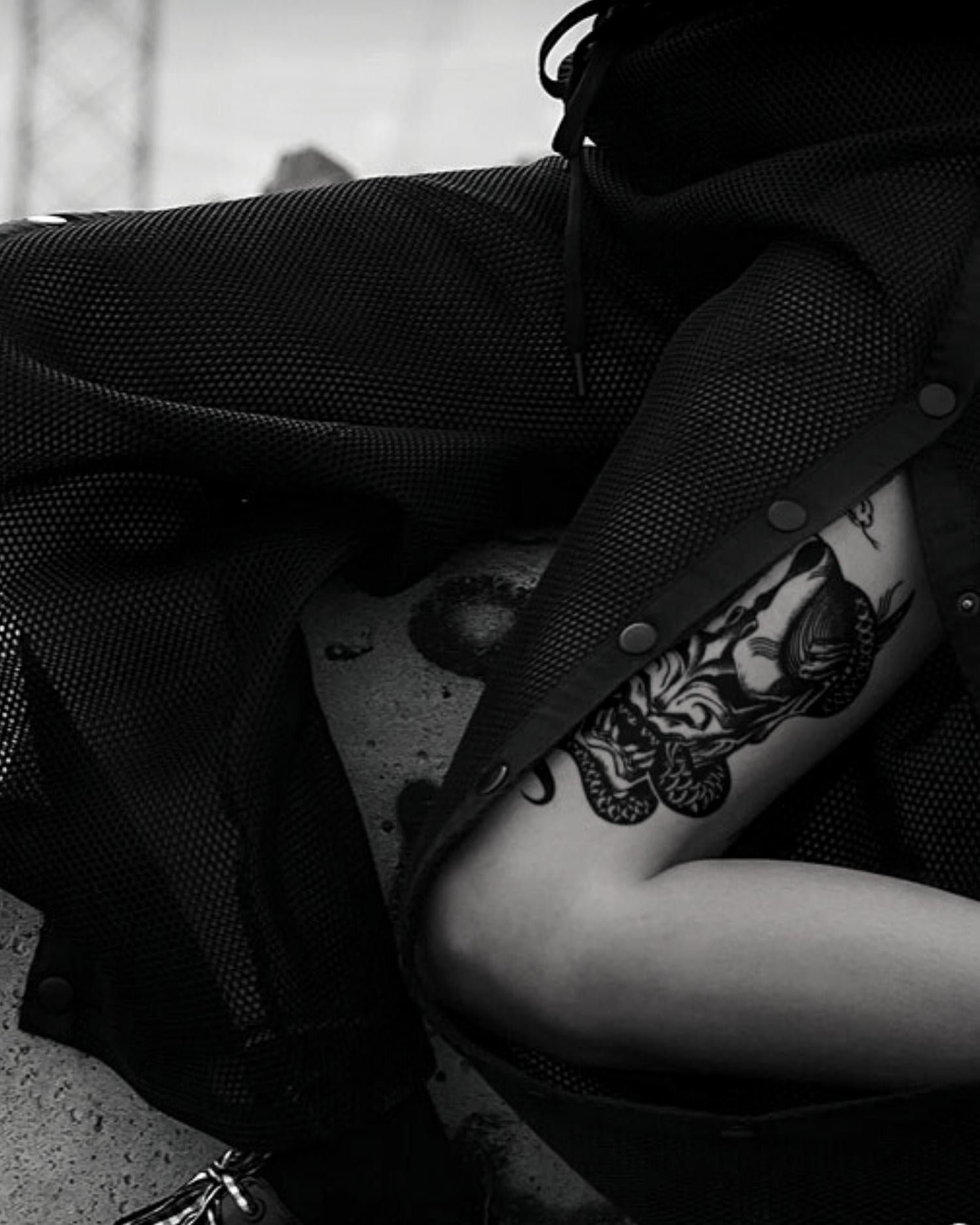 Hannya はんにゃ is a tattoo mask that symbolically reflects transformation, inner turmoil, female power, and the consequences of uncontrolled emotions. Widely seen as a potent talisman, this intricate design is used as a spiritual protector against evil spirits and a reminder of the dangers of obsession and jealousy.
