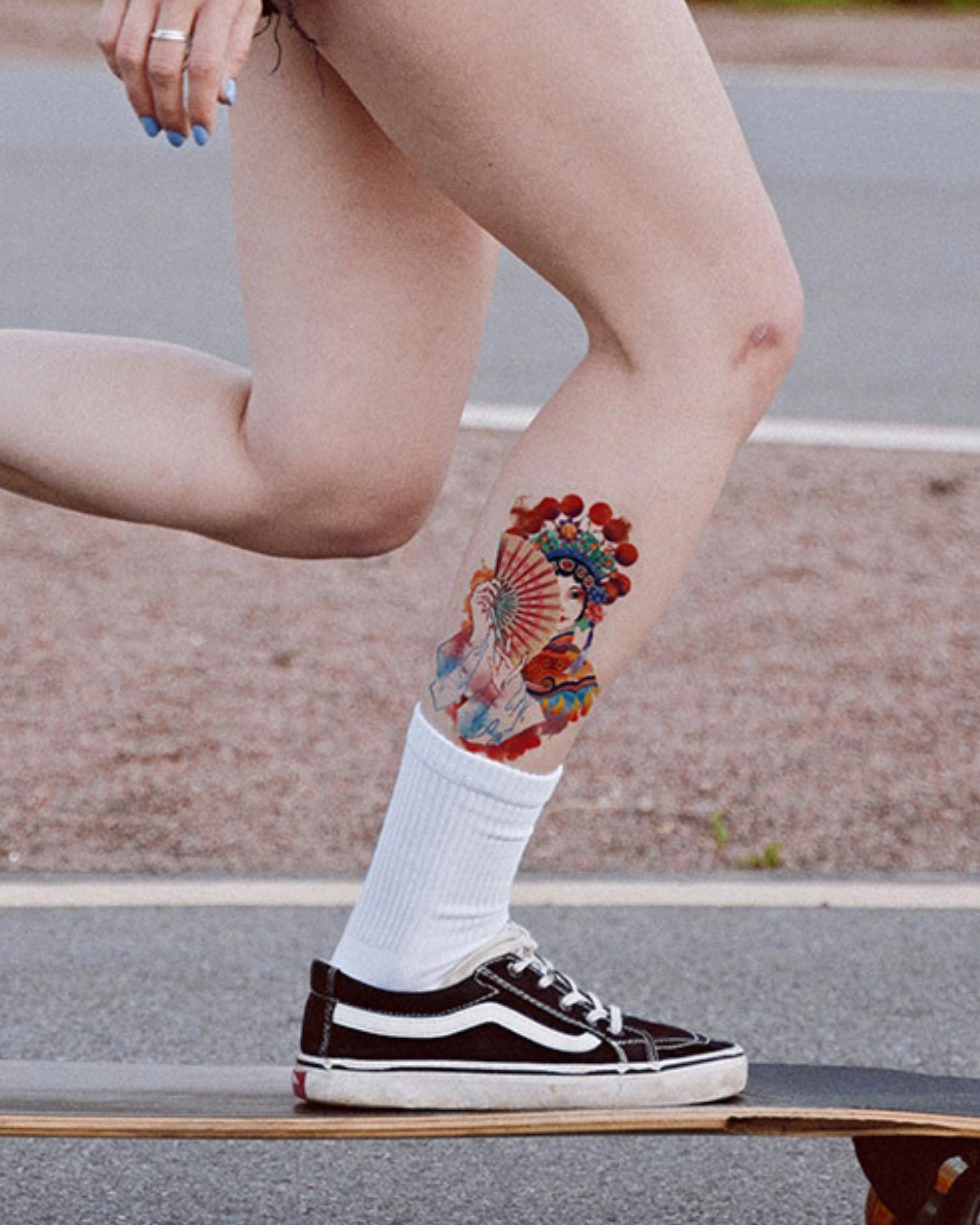 The confidential herbal tattoo sticker, primarily made from the rubiaceae plant gardenia, reacts organically with skin keratoprotein, turning the skin blue and then bluish-black as the color intensifies. The color is retained on the skin's stratum corneum, part of the epidermis, which also includes the basal membrane and basal lamina. As aged keratinocytes are shed in a typical 2-4 week metabolic cycle, the tattoo color fades without leaving residues or causing side effects.