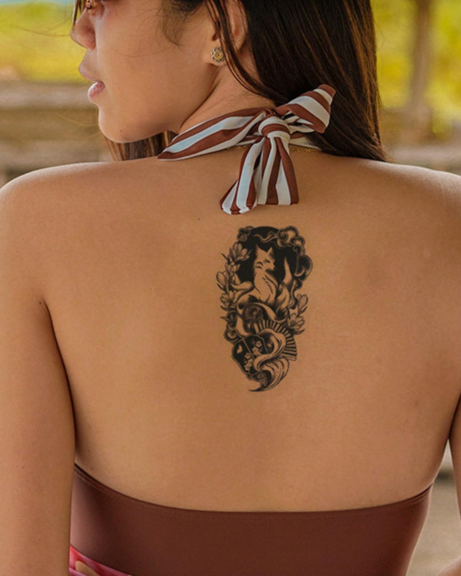 The Nine-Tailed Fox designs often carry meaning related to transformation, resourcefulness, mysticism, and harmony. It stands for adaptability, intelligence, supernatural powers, and a balance between the corporeal and spiritual world. It also symbolizes feminine power and ability to attract others.