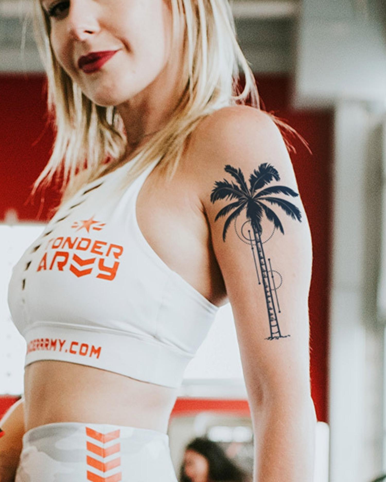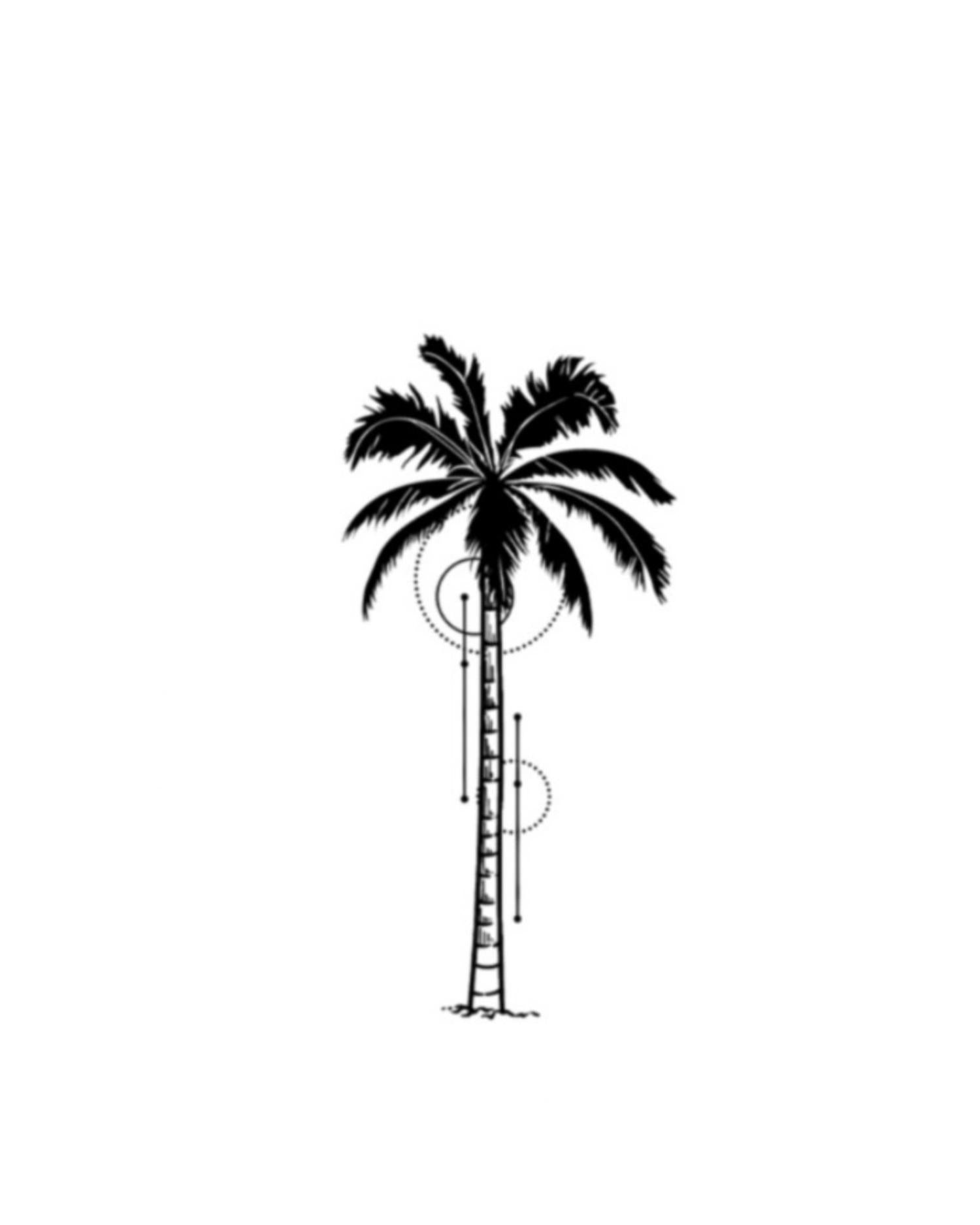 The "Palm tree" tattoo is a symbol of sun, sea, and paradise, embodying the essence of tropical bliss and carefree vibes.