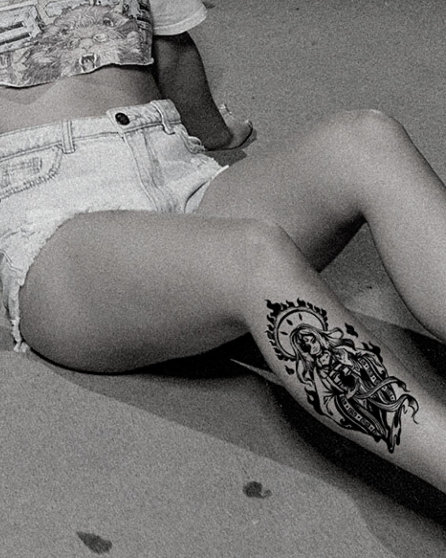 The confidential herbal tattoo sticker, primarily made from the rubiaceae plant gardenia, reacts organically with skin keratoprotein, turning the skin blue and then bluish-black as the color intensifies. The color is retained on the skin's stratum corneum, part of the epidermis, which also includes the basal membrane and basal lamina. As aged keratinocytes are shed in a typical 2-4 week metabolic cycle, the tattoo color fades without leaving residues or causing side effects.